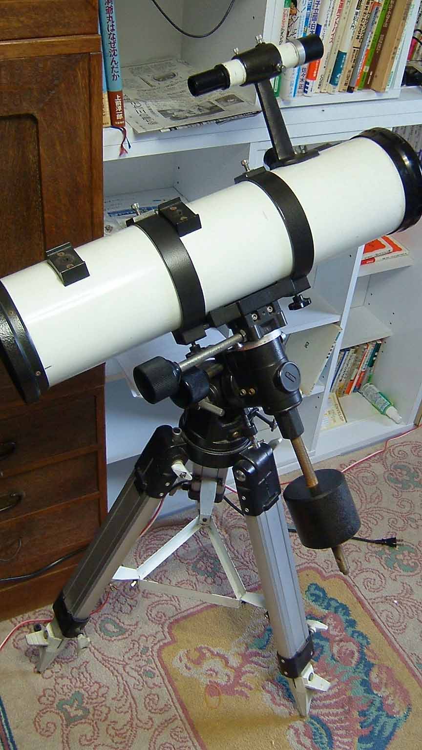 10cm反射式望遠鏡 メーカー品写真 架台は赤道儀式です 15年くらい前に購入したものです