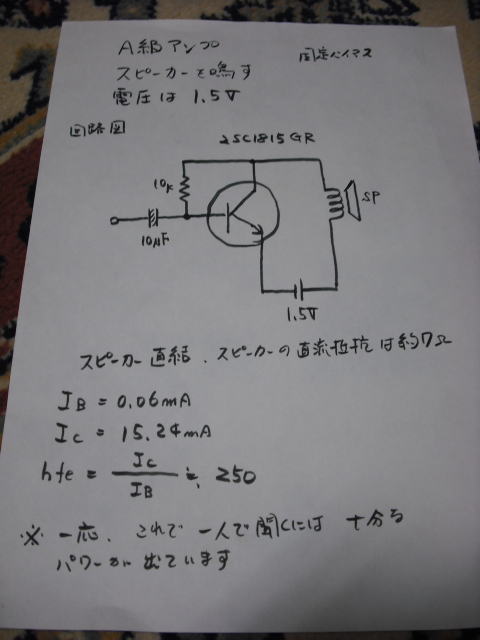 更に、スピーカを鳴らすことができないかと、思いトランジスター1石で増幅し
